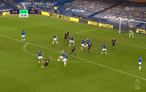 77'曼城右路连续配合,B席内切后大禁区线上左脚射门命中,帮助曼城锁定胜局,3比1!