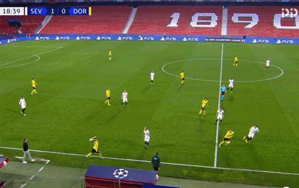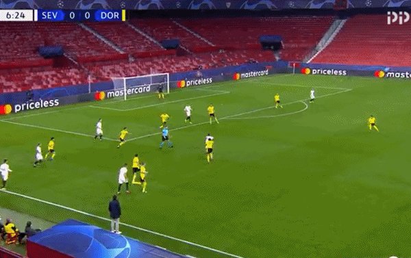 73'塞维利亚禁区前左侧任意球,奥斯卡·罗德里格斯主罚中柱,随后球被多特蒙德球员解围