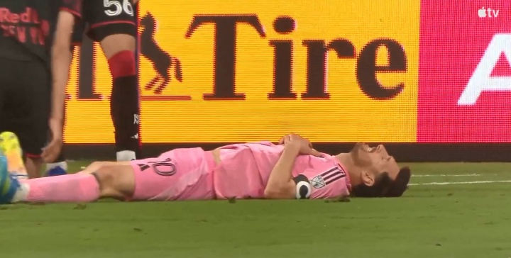 04月12日讯 美职联迈阿密vs纽约红牛,下半场梅西错失良机。德保罗分球,梅西小禁区扣过对手后,左脚兜射擦着门柱偏出。